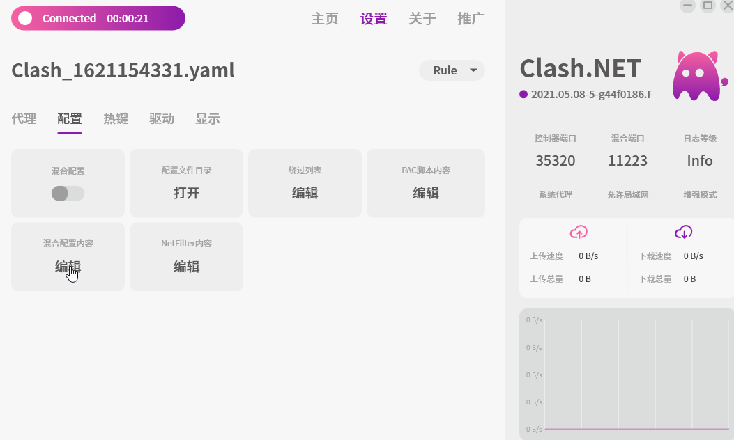 注意:如果你的Clash网卡显示无法连接网络,请换掉一些mixin中的DNS(nameserver和fallback)