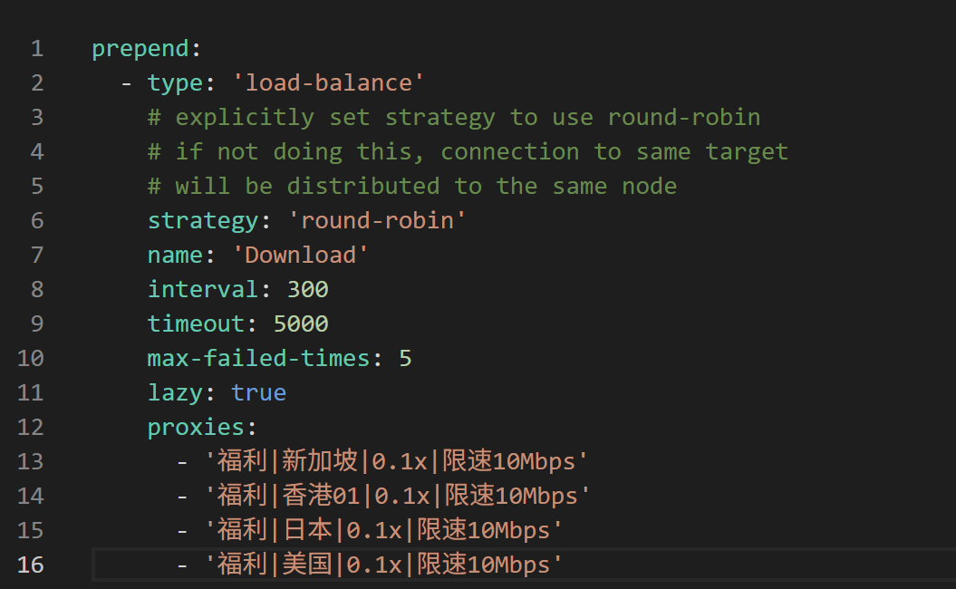 This post demonstrates how to use Load Balance proxy group feature in clash core to download files using several such “download nodes”, effectively bypassing the speed limit set on every signal downloading node.