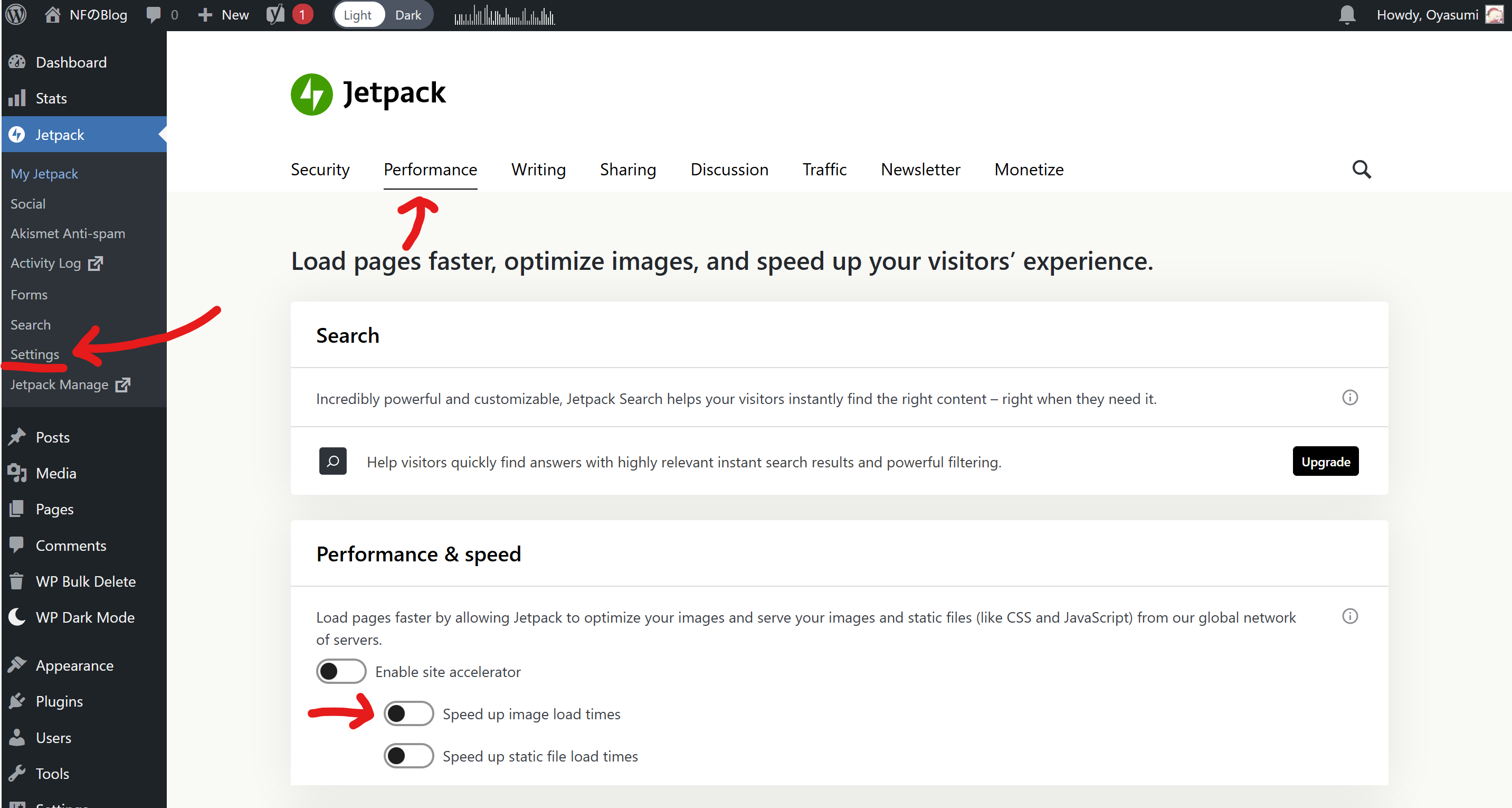 To avoid this, we could go to the Jetpack settings to disable image optimation:
