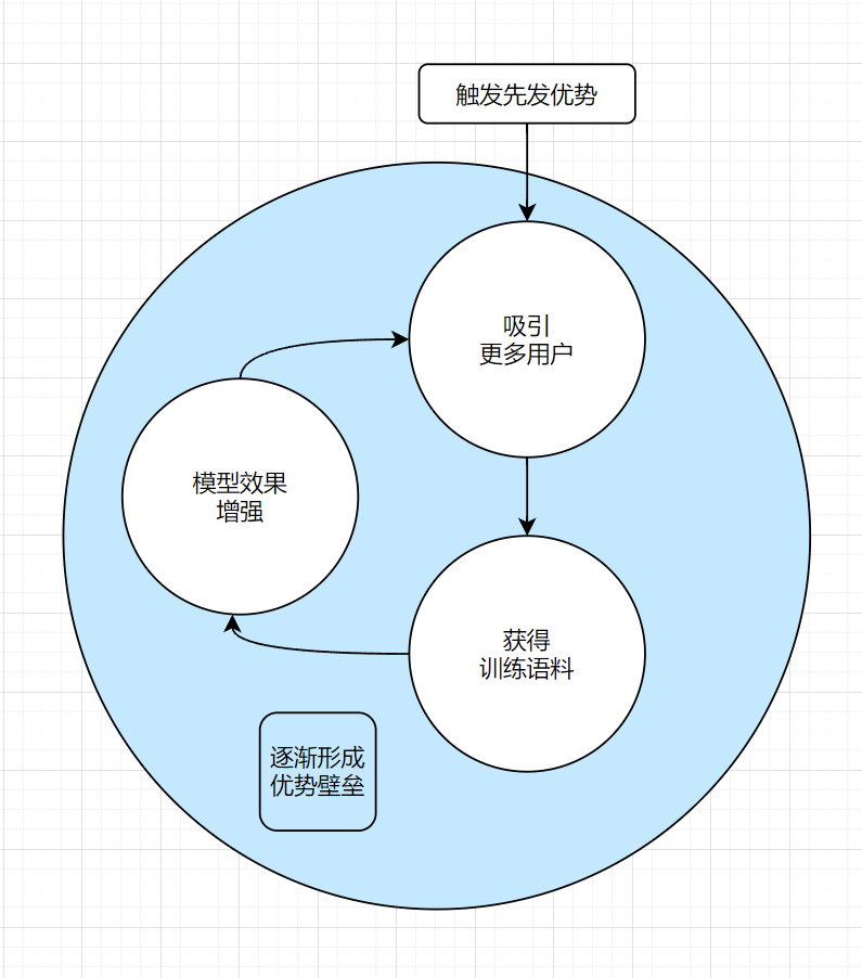 但从另外一个角度来讲,对于IT和互联网行业,特别是AI行业,先发优势拥有着不一样的意义。就拿AI搜索聊天助手举例子,由于New Bing率先发布其AI搜索助手,获得先发优势,所以大量的尝鲜用户涌入Bing,使用其AI产品,而这进一步为New Bing的AI提供了真实而宝贵的训练资料(AI的效果很大程度上取决于训练资料的质量,而如此大量的真人对话语料是十分宝贵的),而New Bing通过这些资料进一步训练和校准之后,将会获得更好的效果,而更好的效果又会吸引更多用户使用Bing,这是一个典型的正反馈情景,占有优势者反而会获得更多资源和用户,不断加深其优势,最终形成不可逾越的壁垒。这是一个Winner-takes-all的局面。